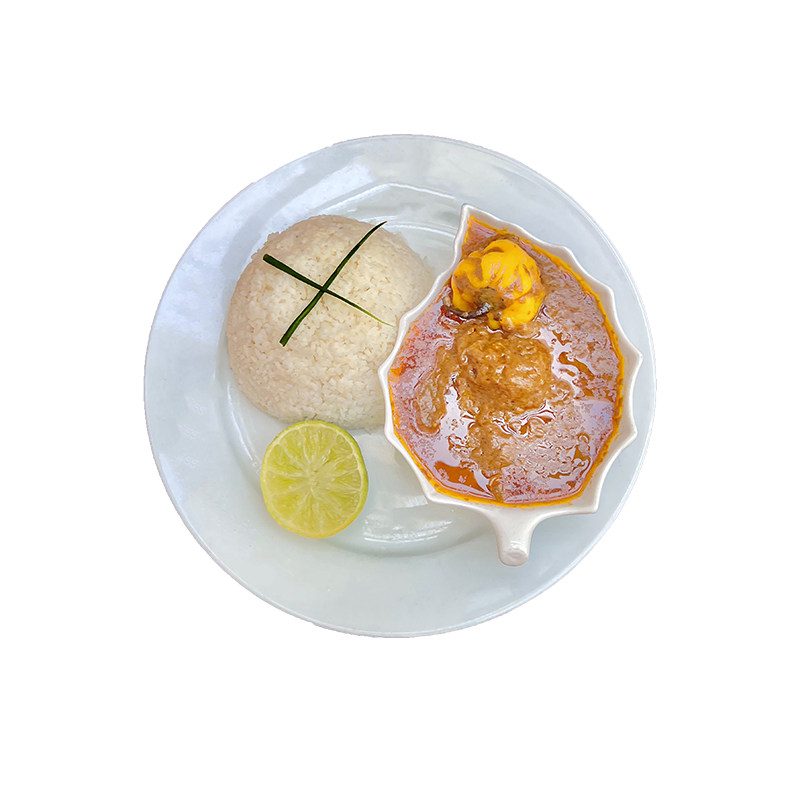 Riz blanc accompagné de sauce arachide à la viande et légumes