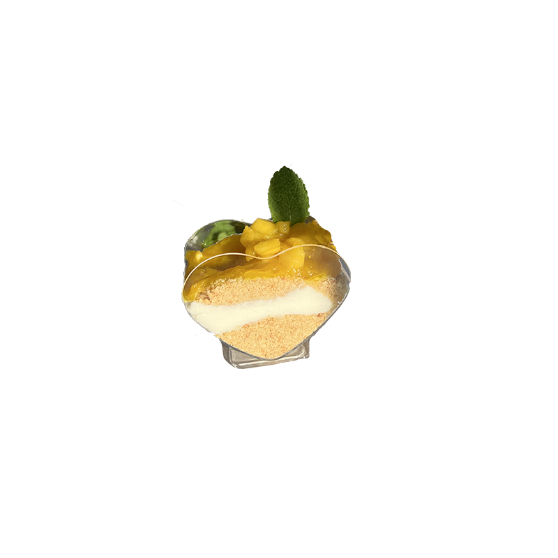 Biscuit breton, crème mascarpone, gelée et morceaux de mangue.